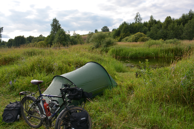 Making excellent time, so another short day. Left Borovichi in the shadow of Russia’s first arch bridge (1905; currently under repair) and off of the P8 road onto a regional one heading west. Decent surface and some of the first climbing in quite a while. Nothing big, but some sustained grade for more than several kms.