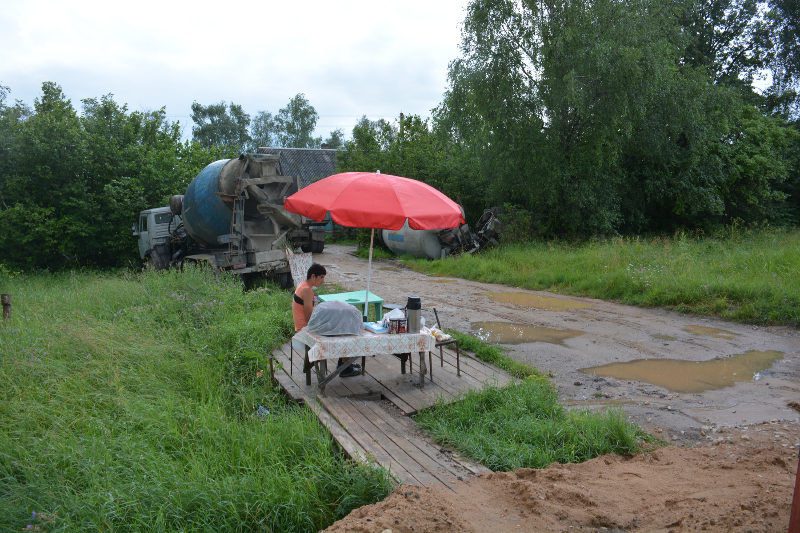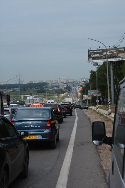 Moscow is the biggest metro area I approach on this tour and it lived up to expectations today. The day began with a drenching from some remnants of yesterday’s storms. Luckily, cloud cover remained for most of the morning keeping temps somewhat reasonable. Stopped for a roadside instant coffee from one of several small stands right before the urban sprawl began.