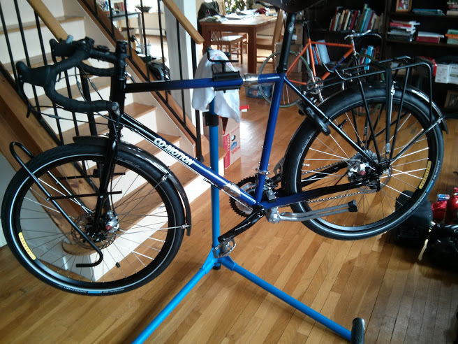 A custom Comotion Pangea from Oregon. Shoutouts to Michael Orff at Wheelworks, Harris Cyclery, Peter White Cycles, and Wayne at the TouringStore for all their help in sourcing and assembly. Check out the full gear list.