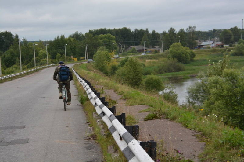 Making excellent time, so another short day. Left Borovichi in the shadow of Russia’s first arch bridge (1905; currently under repair) and off of the P8 road onto a regional one heading west. Decent surface and some of the first climbing in quite a while. Nothing big, but some sustained grade for more than several kms.