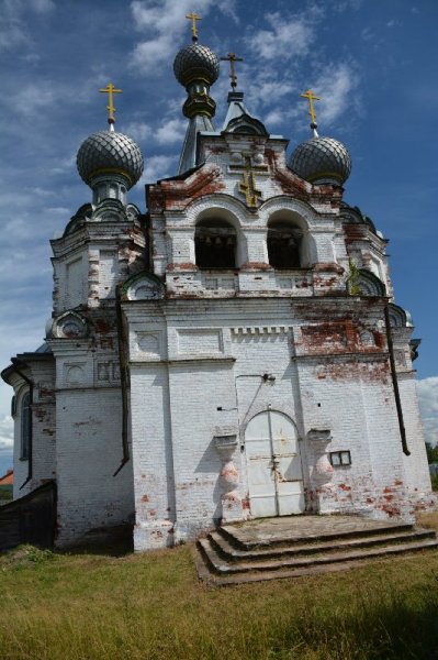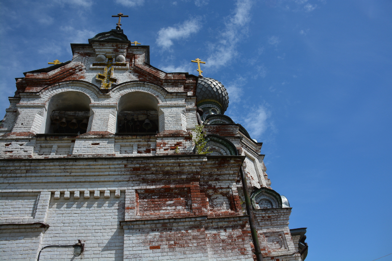 Passed several abandoned factories and crumbling Soviet concrete structures on the way out of Ivanovo. Still nice, cool temps as I continued to follow the A113 north. Spotted a roadside stand selling leftover stuffed animals from carnival games? Left the A113 and followed a small, choppy road past a giant power plant towards the Volga for 15km. Beautiful glimpses of the river. Along the way, discovered an abandoned brick church turning back to its original red color.