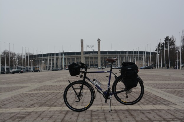 The terrain is getting hilly and approaching Przemyśl I had to negotiate the steep incline and then rapid, windy descent which marks this border town’s natural defenses. I spent most of the day on beautiful Route 881 (a mostly empty two-lane road with descent pavement) until cutting across a 2km unpaved path towards the town. Unpaved road + rain = mud. I was joined by two roaming dogs on the mud path. They moved faster than me and also seemed to be conducting important daily rounds while I was just transiting.