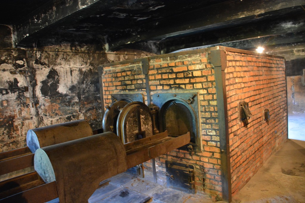 Being built out of brick and stone, most of Terezin remains standing. My entire visit evoked ghosts and an invisible cloud of evil with empty buildings and no other people around. The only part of Auschwitz which really provoked a similar feeling was the single extant gas chamber and crematorium. Walking into the chamber, seeing the ceiling slots where the Zyklon B canisters were dropped and then (unlike the victims) being able to walk out of the chamber to the room where the ovens were used gave perceptible chills. And, you could tell by the way others on the tour reacted that this was a shared feeling.