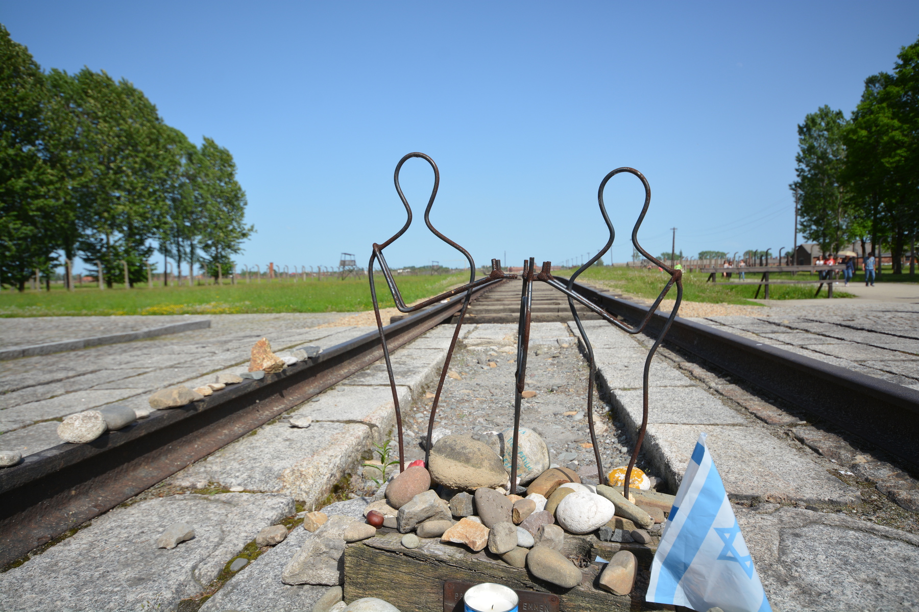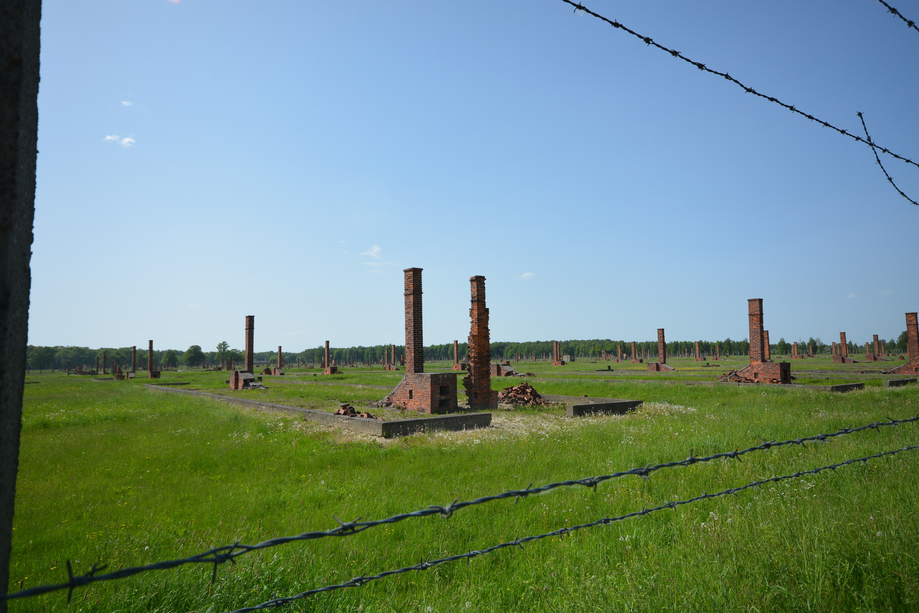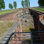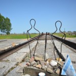 Birkenau was an entirely different experience. Here the term “camp” is apt. Imagine a giant, cleared field (~750 acres) laid out with a perfect barbed wire grid and regularly spaced barrack structures. Most of the originals were made of wood, so the only parts left standing are the brick chimneys and a few reconstructed structures. The entire space is bisected by a railroad track which is how prisoners were brought into the camp and the last thing most saw before they were immediately herded to their death. Unlike Terezin, Birkenau wasn’t build to be permanent. The barbed wire posts, the wooden building, it all looks as if the Nazis expected to be able to completely annihilate their enemies in the space of a few years at which time the camp would be superfluous.